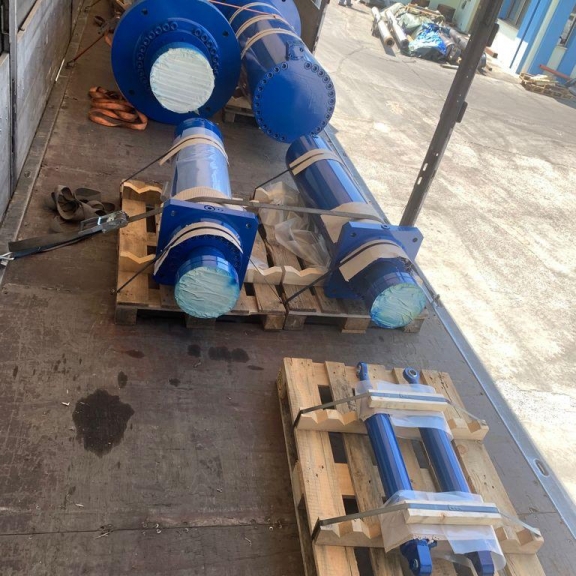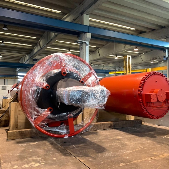 These are smaller cylinders, installed on water turbine control systems and pipe flow regulation systems. Similar double-acting cylinders are also installed in on fishways.